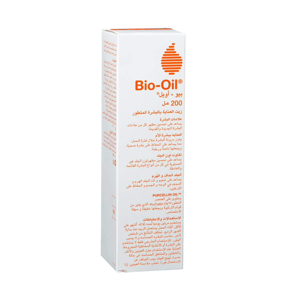 بيو أويل يحتوي على مكونات مبتكرة من بيورسيلين، فيتامينات ايه وإي، مستخلص البابونج ومزيج من الزيوت الطبيعية.